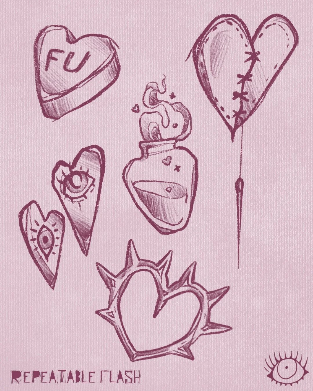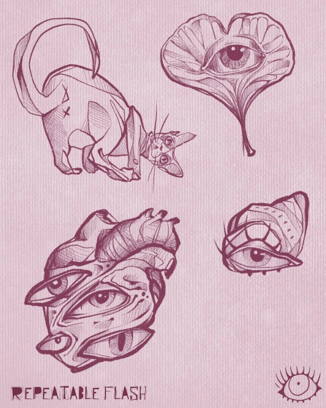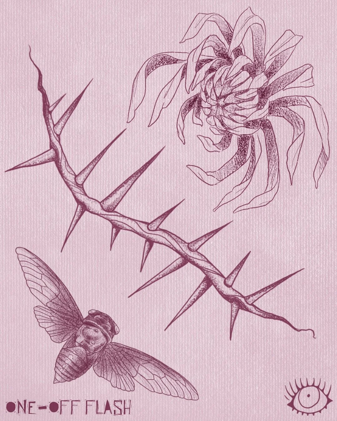 Larger designs that are drawn with specific locations in mind. Priced by the hour. May take multiple sessions. Designs marked with the ✯ have been claimed, but similar versions can be custom drawn to fit your anatomy.